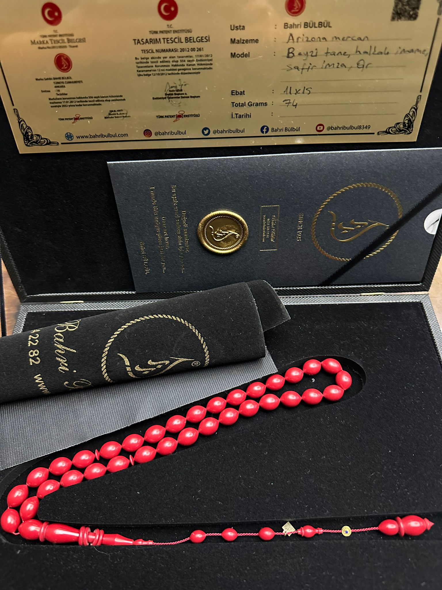 Arizona mercan beyzi tane,halkalı imame, Safir imza ,qr 11.15 mm 74 gr