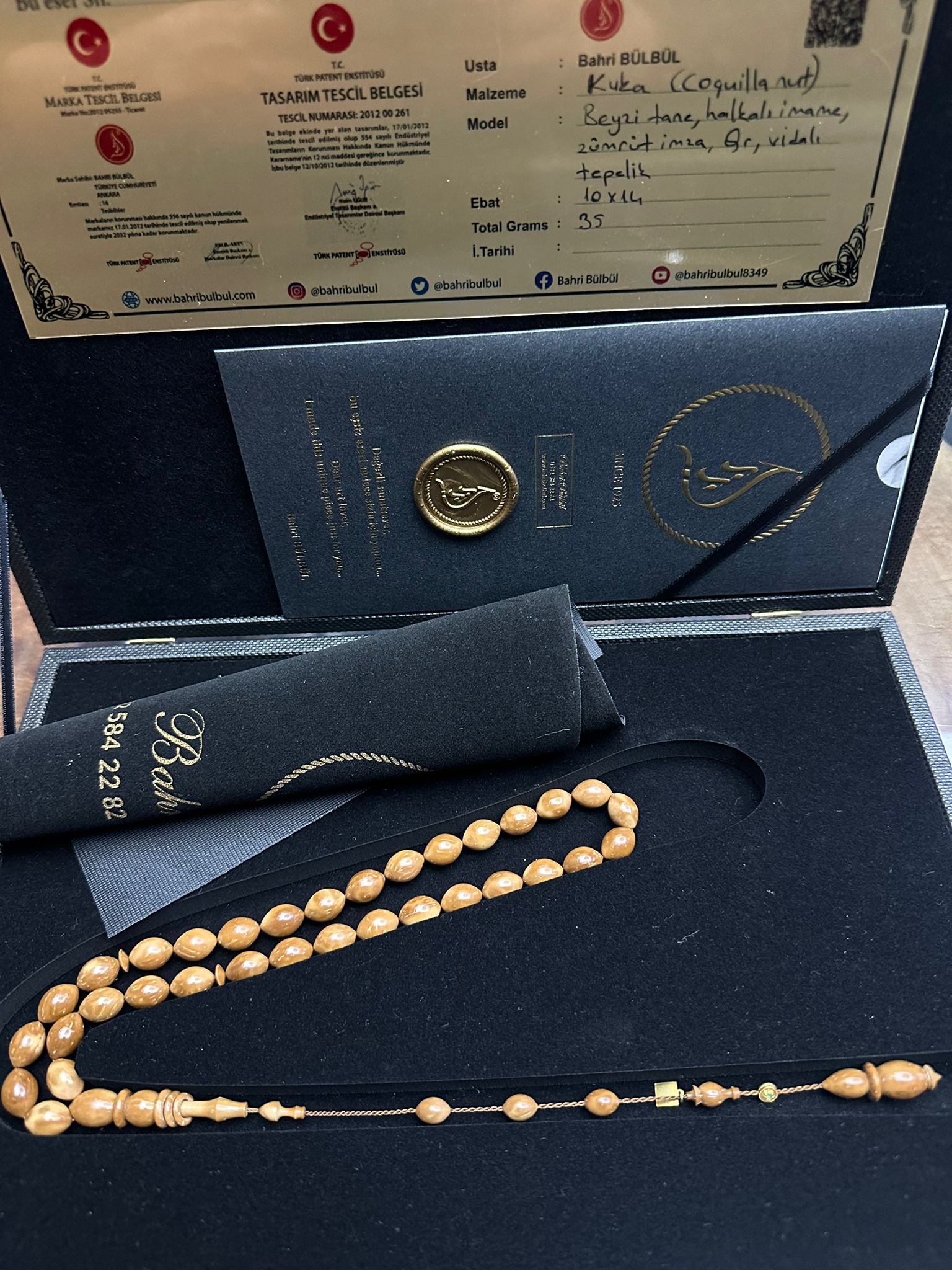 Kuka ( coquillanut) beyzi tane halkalı imame, vidalı tepelik ,zümrüt imza ,gr 10.14 mm35 gr